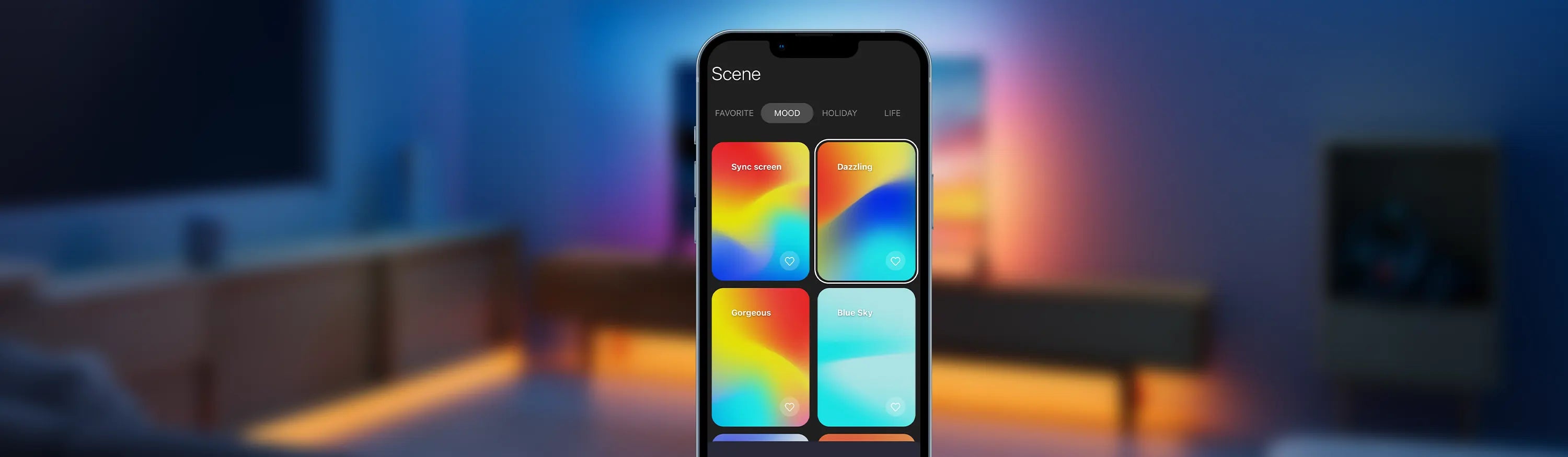 Take control of your lighting experience with ease using the app. Simply scan the QR code to download the app, and you're ready to customise your backlights. With just a few taps, you can choose from millions of colours and shades to perfectly match your mood and preference. It’s as easy as that!